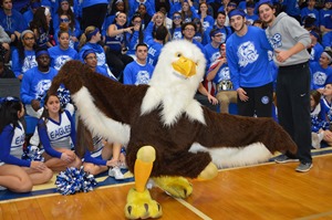 A one line shout out to be displayed for all games during a single day in the Paul VI gym. Display will be on half of the 96" x 27" LCD screen at the scoring table.